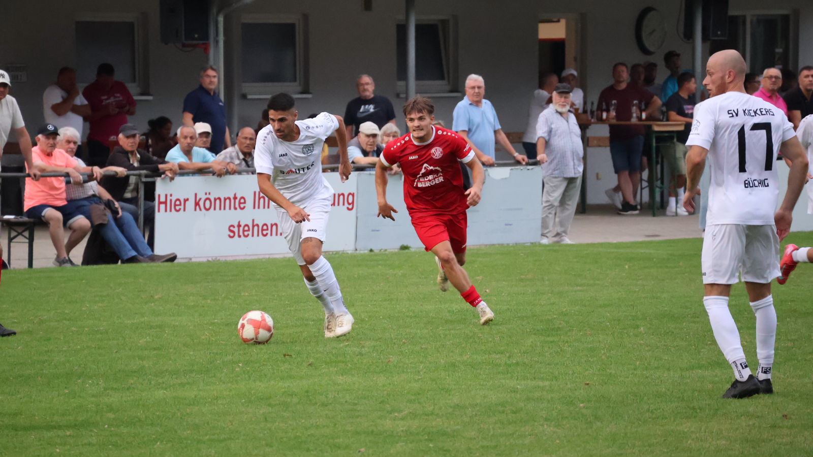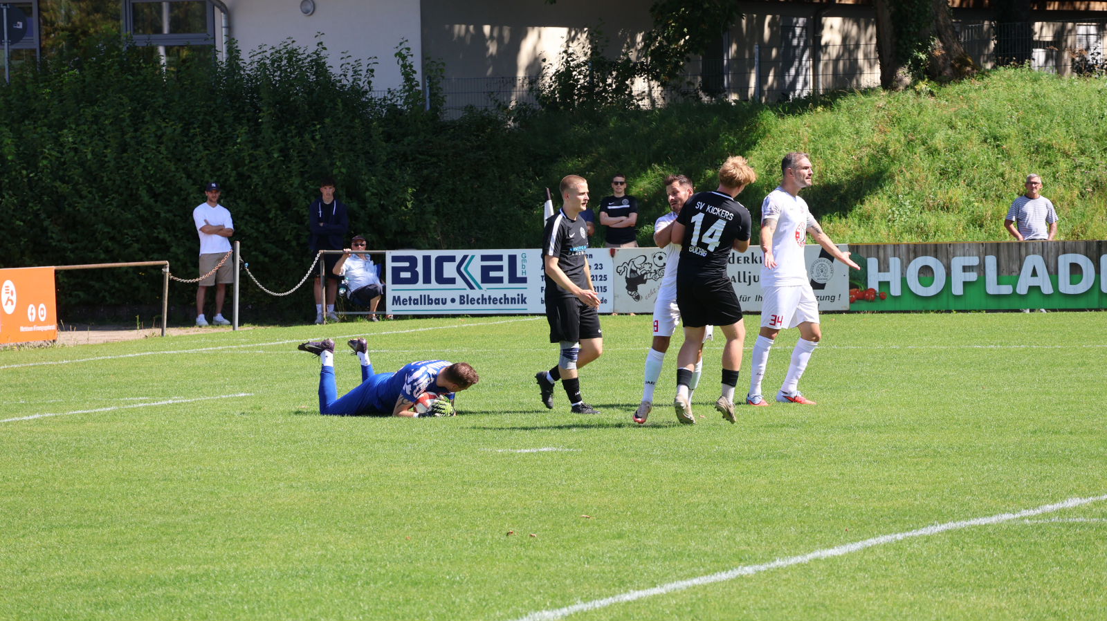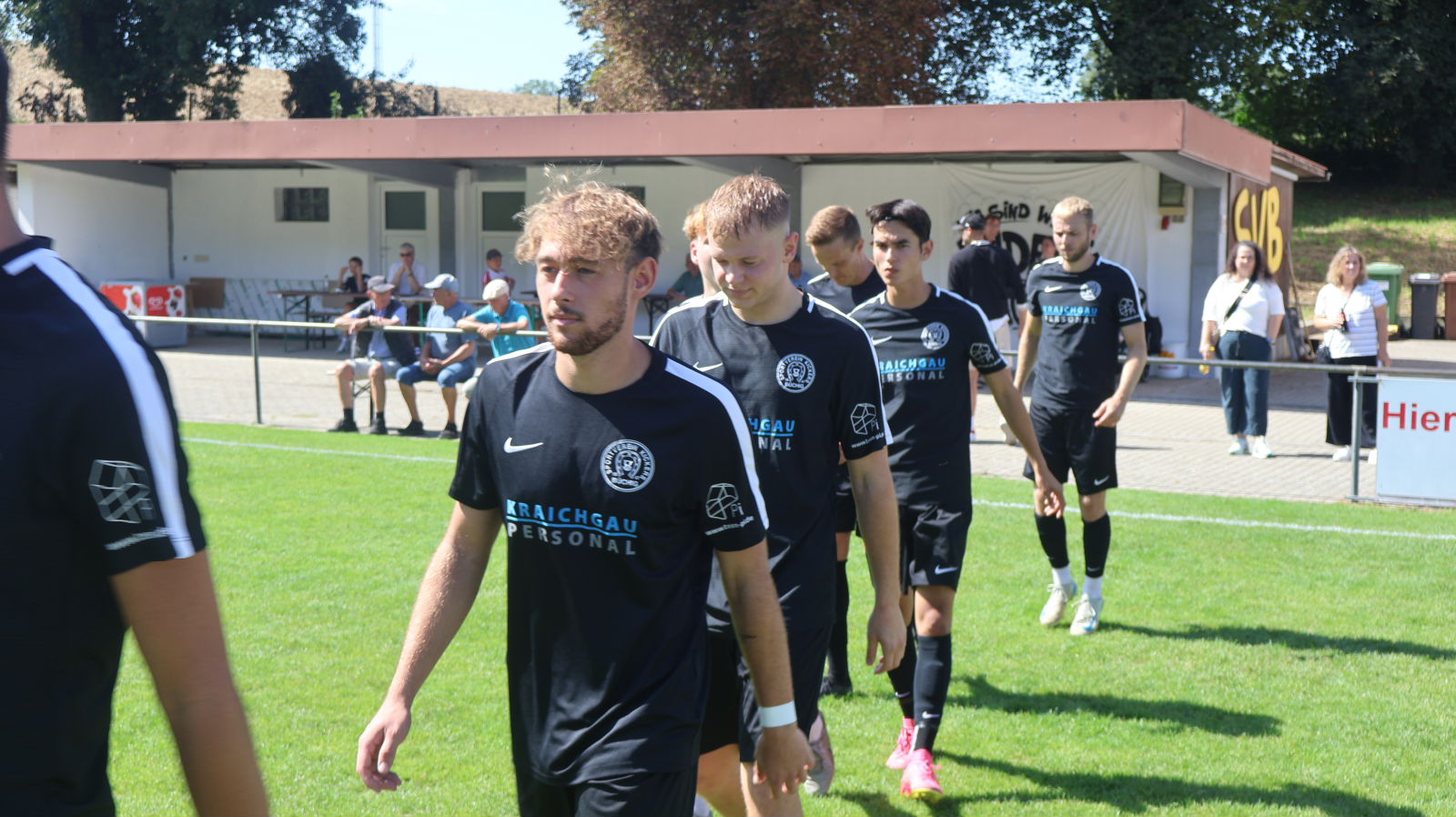 Die Kickers mussten im Derby gegen einen der großen Aufstiegsfavoriten auf einige Stammkräfte verzichten. Mit Kaan Balkis, Daniel Schlegel und Marlon Pippes standen drei Neuzugänge in der Startelf. Die Hausherren spielten von Anfang an auf Augenhöhe mit. Pech hatten die Kickers, als Stürmer Bedi Meral bereits nach gut zehn Minuten das Spielfeld verletzt verlassen musste. Youngster Philipp Gellert kam neu in die Partie und brachte die Hausherren in der 19. Minute mit 1:0 in Führung. Kurz danach zwang Gellert den Gästekeeper mit einem Schuss aus 18 Metern zu einer Glanzparade. Nach einer halben Stunde hatte sein Sturmpartner Leon Steinbrenner die große Chance, die Führung auszubauen. Nach einem Traumpass von Kickers-Spielertrainer Benjamin Dauenhauer lief der SVB-Stürmer allein auf den Tormann zu, vertändelte sich aber im Abschluss. Die leicht feldüberlegenen Heidelsheimer taten sich gegen eine gut sortierte Defensive der Heimelf schwer, zu Torchancen zu kommen. Einen Fernschuss von FC-Kapitän Maurice Mayer hielt Kaan Balkis glänzend. In den letzten Minuten der ersten Halbzeit erhöhten die Gäste den Druck und waren erfolgreich. Nach einer Hereingabe von der rechten Seite drückte Gästestürmer Driton Shema das Leder über die Linie. Nach einem guten Spiel der Kickers ging es mit 1:1 in die Kabinen.