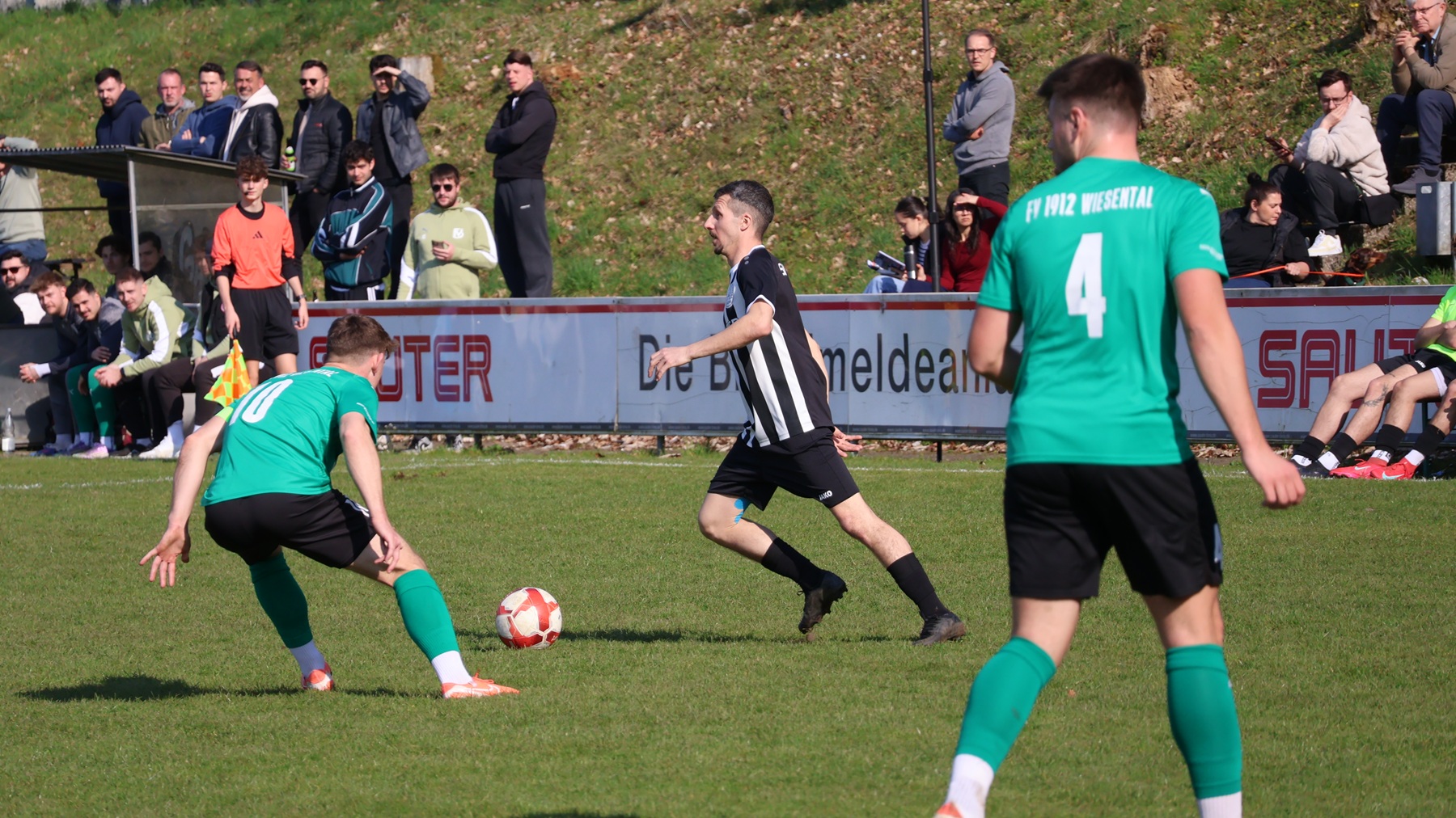 Im zweiten Durchgang machten die Wiesentaler kräftig Druck, was den Kickers Raum für Konter gab. Allerdings standen die SVB-Stürmer häufig im Abseits, sodass vielversprechende Angriffe ohne Erfolg blieben. Nach gut einer Stunde zog dann Kickers-Spielmacher Simon Markovic Richtung Tor und wurde im Strafraum von einem Wiesentaler Abwehrspieler von den Beinen geholt. Den fälligen Strafstoß verwandelte Fatih Solmaz sicher zum 3:1. In der Folge versäumten es die Kickers, den Sack zuzumachen. Es wurde dann noch einmal spannend, als die Gäste in der 86. Minute auf 3:2 verkürzten. Zudem sah Kickers-Spieler Felix Gerweck in der Schlussphase die gelb-rote Karte. Doch mit viel Einsatz brachten die Schwarz-Weißen den knappen Vorsprung über die Zeit.